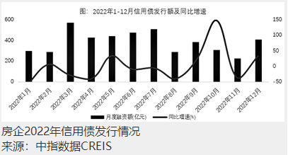 中指研究院近日公布的數(shù)據(jù)顯示,2022年12月,民營房企發(fā)債規(guī)模達(dá)到96.3億元,占全年民營房企信用債發(fā)行量的35.5%,發(fā)行主體也從頭部優(yōu)質(zhì)民企擴(kuò)展到中小型民企。從房企全年單月融資情況來看,3月為年度融資高峰,總量超過千億規(guī)模。下半年,8月、11月均有融資利好政策釋放且快速落地,因此隨后房企融資額小幅回升。其中,優(yōu)質(zhì)民營房企信用債發(fā)行在9月、12月分別出現(xiàn)兩個(gè)小高峰。特別是融資利率方面,受2022年內(nèi)多次降息、信貸環(huán)境相對(duì)寬松、信托融資規(guī)模下降等多重因素影響,房地產(chǎn)行業(yè)平均融資成本明顯下降。