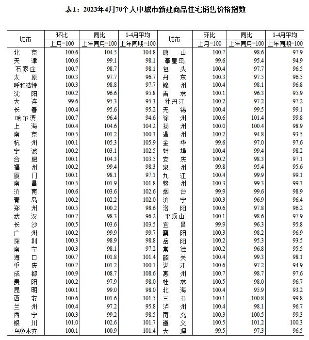 國家統(tǒng)計(jì)局:4月70城房價(jià)環(huán)比整體漲幅回落