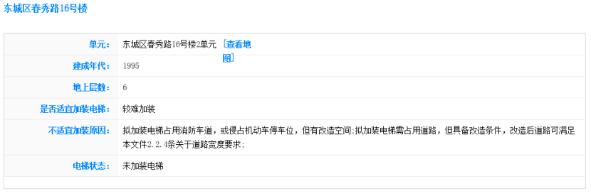 北京市住房城鄉(xiāng)建設(shè)委組織各區(qū)對本轄區(qū)內(nèi)市屬老舊小區(qū)約2萬多棟既有多層住宅樓、10萬余個單元門,從建筑結(jié)構(gòu)安全、空間條件和居民意愿等方面進行了初步摸排評估,在此基礎(chǔ)上,會同市有關(guān)部門開發(fā)了加梯地圖專欄,為居民實現(xiàn)既有住宅“加梯夢”提供了一份詳細(xì)的攻略圖。