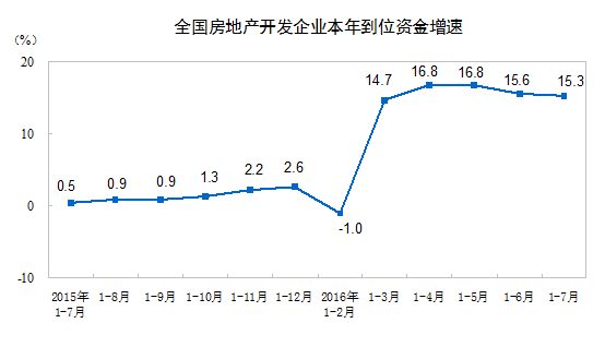 1-7月份,房地產(chǎn)開發(fā)企業(yè)到位資金79881億元,同比增長15.3%,增速比1-6月份回落0.3個百分點。其中,國內(nèi)貸款12605億元,增長0.7%;利用外資93億元,下降49.8%;自籌資金27877億元,增長0.4%;其他資金39307億元,增長36.3%。在其他資金中,定金及預收款22321億元,增長31.6%;個人按揭貸款13305億元,增長54.6%。