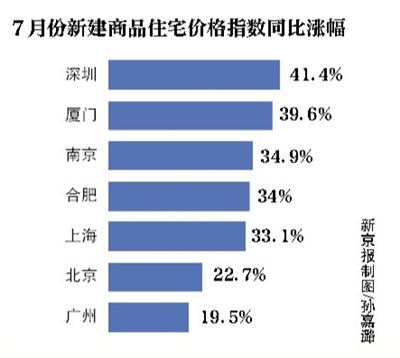 國家統(tǒng)計(jì)局?jǐn)?shù)據(jù)顯示:7月份廈門新建商品住宅價(jià)格指數(shù)較上月環(huán)比增長4.6%,較去年同比漲幅達(dá)39.6%。
