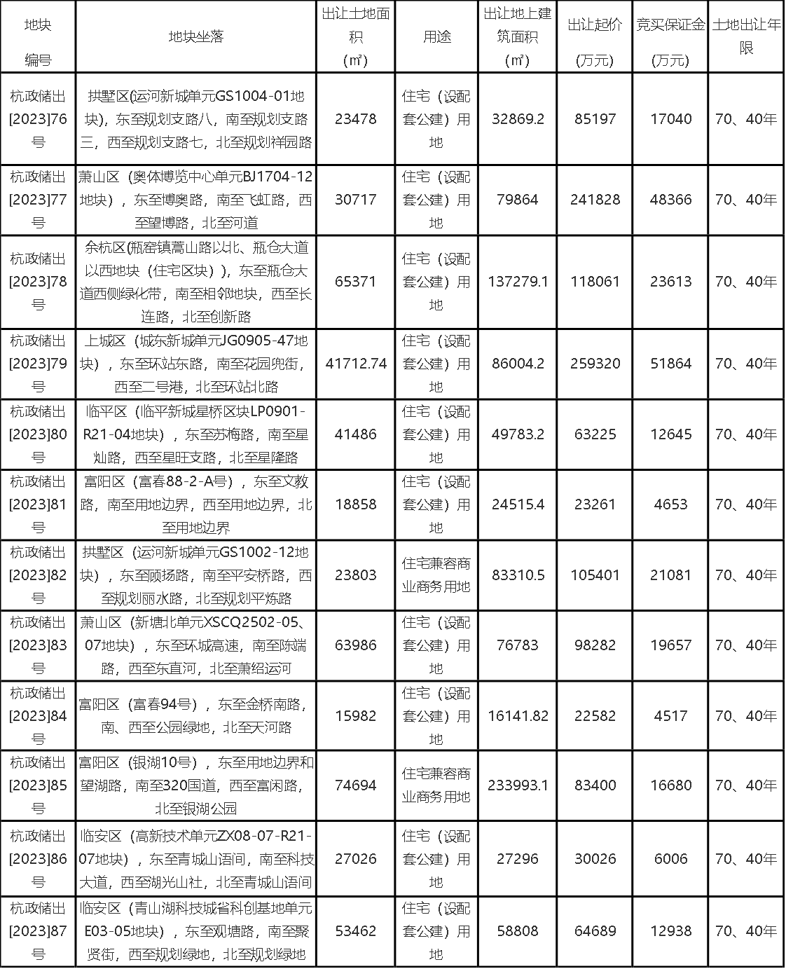 杭州119.5億元掛牌12宗宅地,計(jì)劃于6月30日出讓