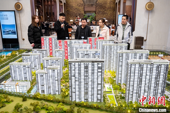 圖為3月7日,太原一家房地產(chǎn)公司新開(kāi)樓盤吸引購(gòu)房者關(guān)注。 中新社記者 韋亮 攝