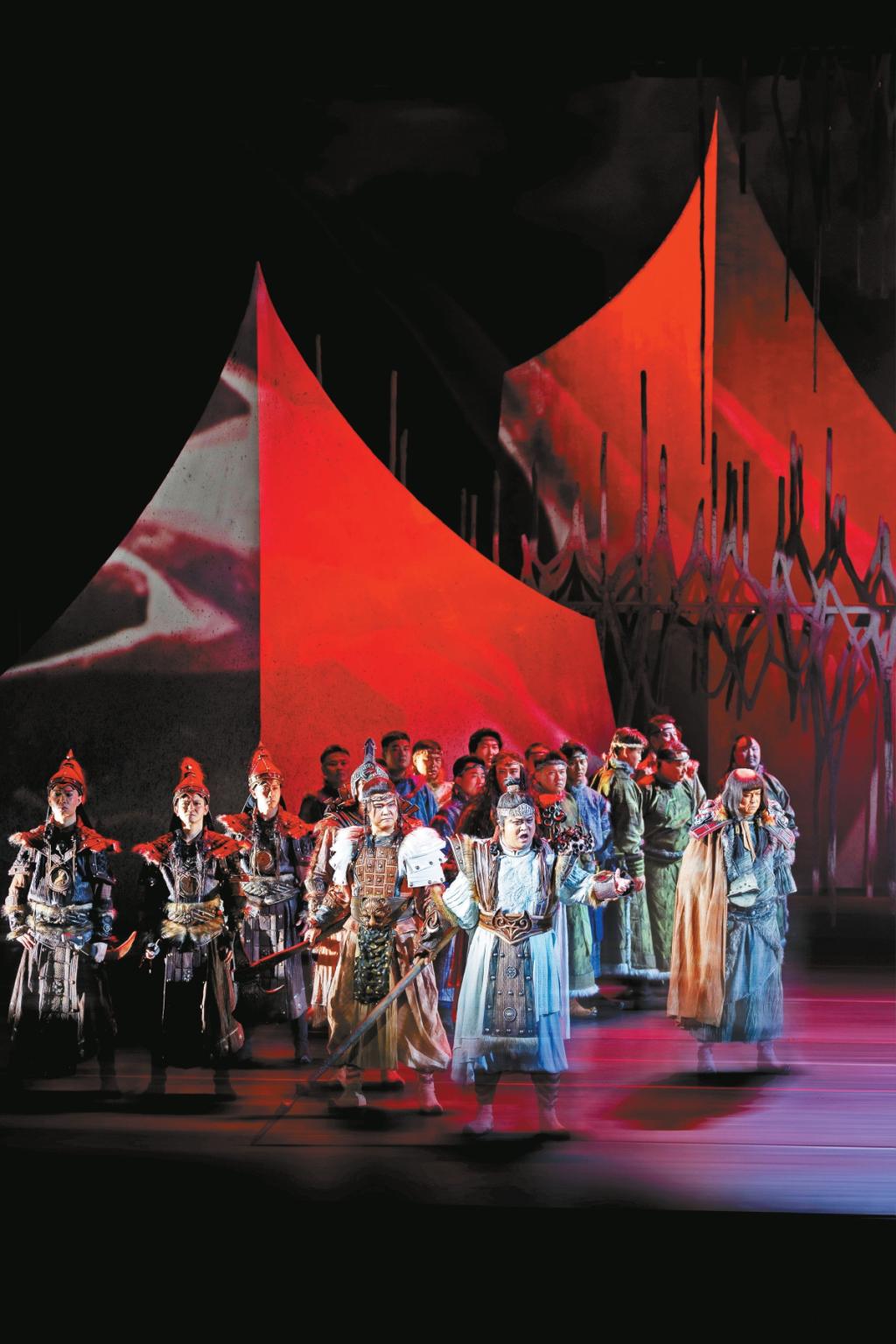 歌劇達(dá)到的高度往往和整個(gè)歌劇制作流程的規(guī)范是分不開的。一部歌劇要想把作曲家的樂譜轉(zhuǎn)化成完整的演出呈現(xiàn)在舞臺(tái)上,需要經(jīng)歷做音樂作業(yè)、坐排、合成等數(shù)個(gè)環(huán)節(jié)。作為舞臺(tái)領(lǐng)域的專家,陳蔚與地方合作的時(shí)候,都不遺余力地推廣科學(xué)的演出制作流程。在排演內(nèi)蒙古藝術(shù)劇院的首部歌劇《江格爾》時(shí),陳蔚從給演員上戲劇表演、形體集訓(xùn)課開始,一點(diǎn)點(diǎn)地將科學(xué)的流程蘊(yùn)含在日常的工作中,對(duì)當(dāng)?shù)氐谋硌蓐?duì)伍和幕后團(tuán)隊(duì)進(jìn)行了系統(tǒng)培養(yǎng)?!耙钊胪诰蛎總€(gè)演出團(tuán)體的藝術(shù)特長(zhǎng),真正站在地方院團(tuán)的角度打造劇目,發(fā)揮其特長(zhǎng),彌補(bǔ)其不足。”陳蔚表示,唯有充分調(diào)動(dòng)各方力量,減輕地方負(fù)擔(dān),讓作品越演越有價(jià)值,才能真正留下精品。