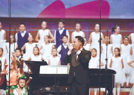 本場演出由北京音樂家協會作為指導單位,指揮家鄭健擔任藝術總監(jiān)?!拔液臀业淖鎳豢桃膊荒芊指?。無論我走到哪里,都留下一首贊歌?!彪S著北京音協童聲合唱團成員、11歲的張彰響亮悅耳的歌聲響起,音樂會正式開啟。本場音樂會分為四大篇章,分別是“祖國有我”“經典傳唱”“致敬父母”“童心向未來”。