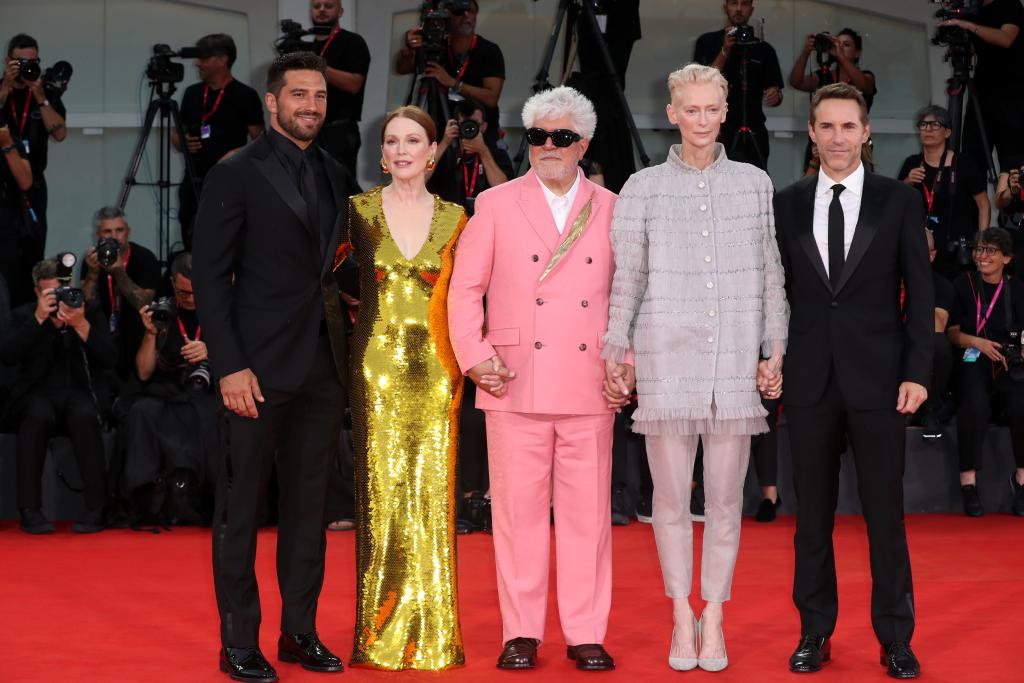 9月2日,在意大利威尼斯舉行的第81屆威尼斯國(guó)際電影節(jié)上,主競(jìng)賽單元影片《隔壁房間》主創(chuàng)亮相首映式紅毯。新華社記者 李京 攝