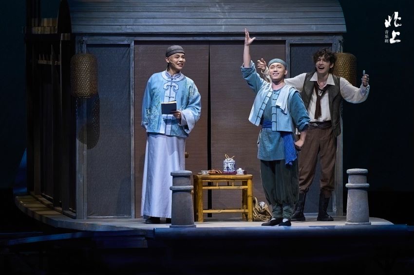 作為北京文化藝術(shù)基金2023年度資助項目、“大戲看北京”展演劇目,音樂劇《北上》由中共北京市委宣傳部、北京市文化和旅游局指導(dǎo),北京廣播電視臺出品,講述了20世紀初漕運總督府翻譯謝平遙與來華考察的意大利人“小波羅”等一同踏上沿京杭大運河北上的旅程,歷經(jīng)磨礪,終獲曙光,在亂世洪流中建立起深厚友誼。