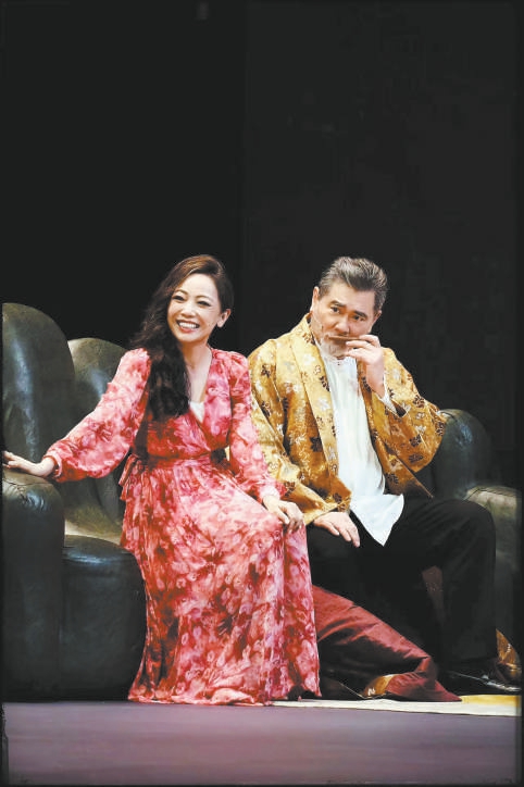 舞臺(tái)的時(shí)間畢竟有限,不能雨露均沾到每個(gè)角色身上,然而《鱷魚(yú)》團(tuán)隊(duì)對(duì)次要人物的描摹與創(chuàng)作,也展現(xiàn)出只有經(jīng)驗(yàn)成熟、全情投入的劇團(tuán)才能抵達(dá)的高度。趙太太的角色占比篇幅不大,“未見(jiàn)其人,先聞其聲”的獰笑,卻給觀眾留下很深的印象。王菁華采用了漫畫(huà)式的表演技巧,激活了人物對(duì)他人悲喜不管不顧的冷漠狀態(tài),貪小便宜的舉動(dòng)又顯示出三分“壞得可愛(ài)”,讓人忍不住聯(lián)想這個(gè)寥寥幾筆的女人背后的故事:她也曾是容貌姣好、手段狠辣的美人,如今只能在牌桌上靠手氣度日子,在他人家里聽(tīng)墻角、編撰故事來(lái)發(fā)財(cái)。飾演秘書(shū)的李宗雷,在《紅樓夢(mèng)》“葫蘆僧亂判葫蘆案”中,找到了下位者在權(quán)勢(shì)面前左右逢源、見(jiàn)風(fēng)使舵的坐姿、表情等特征,加以模仿,竟真的讓人看起來(lái)又氣又畏。