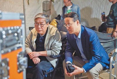 圖為《西北歲月》總導(dǎo)演董亞春(左)和總制片人王勇在工作中。《西北歲月》片方供圖