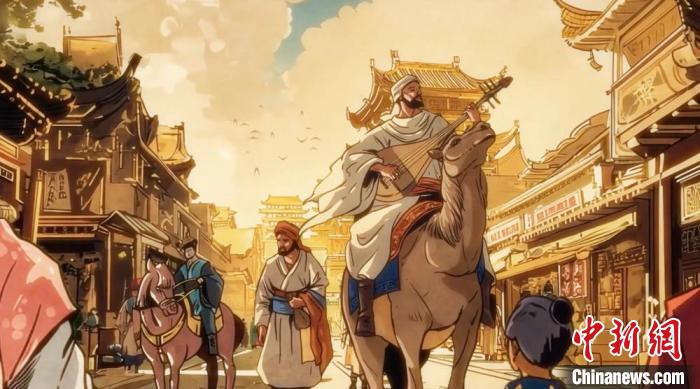 “漫畫中國”系列作品之一的《唐三彩駱駝載樂俑上的粟特人》片段畫面。(中國傳媒大學(xué)區(qū)域國別傳播研究院供圖)