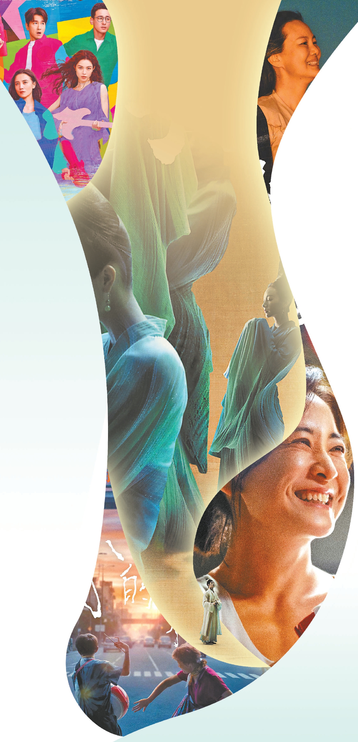 張?jiān)5褜?dǎo)演的《倒倉(cāng)》將傳統(tǒng)京劇與青春成長(zhǎng)相結(jié)合,“倒倉(cāng)”既是戲曲演員在變聲期的必經(jīng)之路,也是少年們?cè)诿鎸?duì)未來(lái)時(shí)的迷惘。故事在對(duì)傳統(tǒng)的繼承中突破,男可扮旦角,女可唱老生,每個(gè)人的人生都由自己掌握。周莉亞、韓真執(zhí)導(dǎo)的《只此青綠》將舞蹈詩(shī)劇這一小眾藝術(shù)推向大眾市場(chǎng),利用鏡頭、實(shí)景、特效等電影手法讓更多觀眾認(rèn)識(shí)了天才少年希孟和他筆下的《千里江山圖》,影片也呈現(xiàn)出一幅鮮活生動(dòng)的北宋人文圖景。在楊圓圓導(dǎo)演的紀(jì)錄片《女人世界》中,跳著Cha- Cha的美籍華裔老年舞團(tuán),每個(gè)人身上都散發(fā)出自信、明媚、積極的生命力。影片用“她92歲,仍年輕”形容舞者余金巧,既有歷盡千帆后的無(wú)畏,也有活在當(dāng)下的愜意與灑脫。
