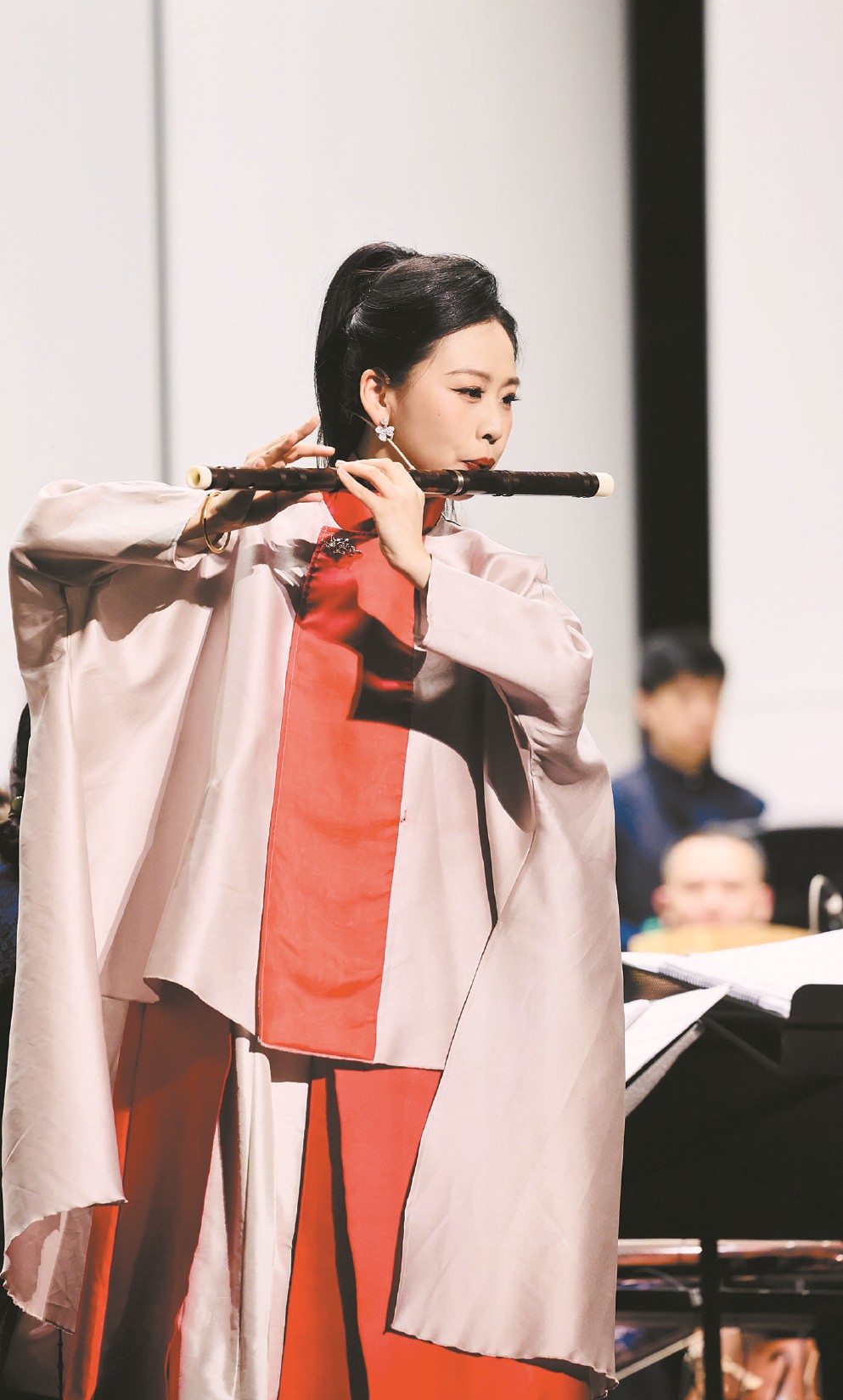 29歲的笛簫演奏家王澤上演李博禪作曲的《云水三章》。這首誕生于2023年的新作分為“向天邊的云”“向水中的葉”“向遠(yuǎn)方的人”三部分,展現(xiàn)了曲笛、梆笛、新笛和簫的不同技巧和音樂(lè)特色,表達(dá)不同的人生意境。28歲的高雅演奏的是郭文景作曲的《愁空山》,這部作品被譽(yù)為竹笛界“最具演奏難度的曲目之一”。高雅迎難而上,不僅傳達(dá)了作品雄渾、厚重的精神內(nèi)核,又呈現(xiàn)出細(xì)膩感和層次感。