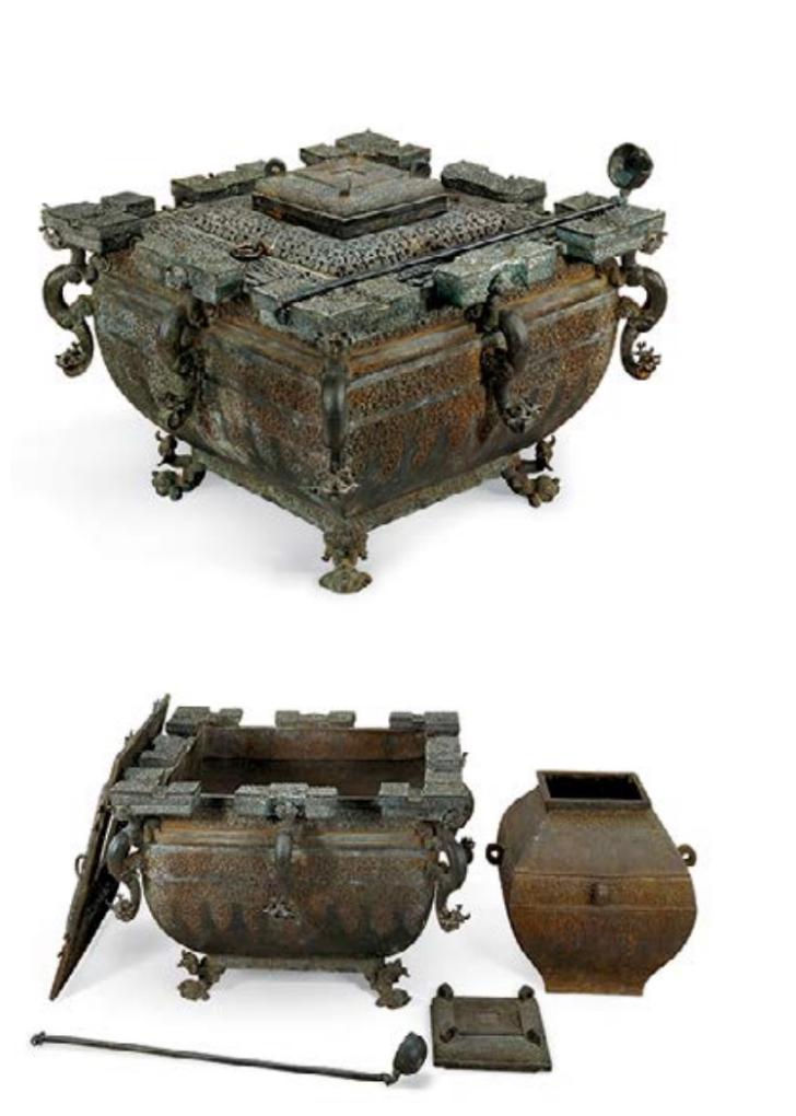 影片中用于冰酒的銅鑒缶正是出自于湖北省博物館館藏曾侯乙銅鑒缶,它由外部的鑒、鑒內(nèi)置的缶組成,是中國最早的“冰箱”。在鑒的內(nèi)部放上缶,中間的空隙放上冰塊,可在祭祀和宴饗時冰鎮(zhèn)酒。“以古為鑒”“擊缶而歌”等成語亦由此衍生而來。
