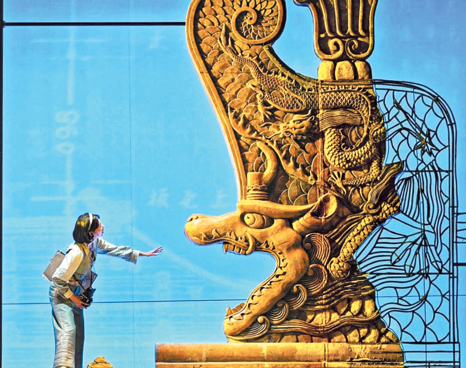 王琛透露,舞臺(tái)上關(guān)鍵的古建筑構(gòu)件均嚴(yán)格按照1∶1的真實(shí)比例復(fù)原制作,當(dāng)它們懸置于觀眾面前,一種視覺(jué)上的“沖擊力”油然而生,“觀眾能直觀體會(huì)到劇中人物每日工作的物理尺度和精神重量,體會(huì)測(cè)繪隊(duì)員是以怎樣的血肉之軀攀爬、丈量并挽留這份巍峨的文明?!蔽枧_(tái)地面,北平時(shí)期中軸線的建筑脈絡(luò)化為起伏線條,如紙張般弧形掀起,“寓意著古城文明在戰(zhàn)火中飄搖欲飛卻又根基深植的命運(yùn)。建筑的‘實(shí)’代表文明遺產(chǎn),圖紙的‘虛’代表傳承意志,虛實(shí)明暗的銜接過(guò)渡,共同凝固了那段驚心動(dòng)魄的歷史。”(記者 高倩)