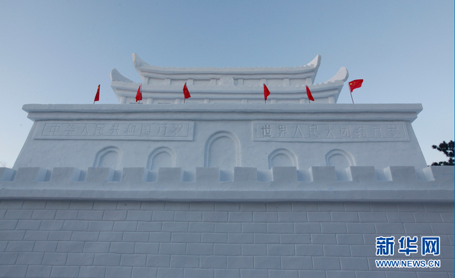 長春南湖公園打造雪雕版“天安門城樓”