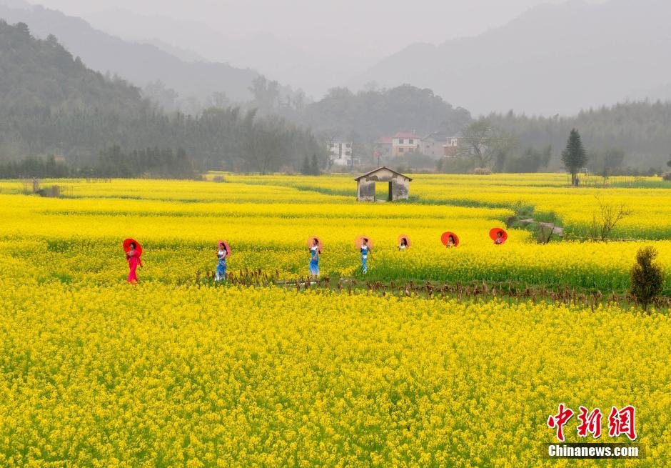 3月20日,江西省德興市??阪?zhèn)杜村婦女在田間花海“走秀”。當(dāng)日,江西德興市??阪?zhèn)杜村一批家庭婦女以千畝油菜花海為舞臺(tái),展示自己的才藝形象,希望宣傳家鄉(xiāng)的自然生態(tài)與人文歷史,擴(kuò)大旅游知名度和影響力。德興市??阪?zhèn)杜村交通便利,自然風(fēng)光優(yōu)美,村內(nèi)有歷史古跡和名木古樹。 胡敦煌 攝