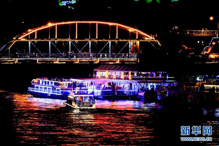 6月14日,一艘游輪從黃河蘭州段中山橋下穿過。自6月12日起,蘭州黃河游輪夏季夜航航線正式開通。據了解,作為黃河蘭州段水上旅游重點線路,該航線由蘭州市城關區(qū)蘭州港碼頭和白塔山碼頭始發(fā),每晚20時起開行,全程約6公里,運行時長50分鐘左右。游客可以乘坐豪華游輪欣賞黃河夜景,感受蘭州黃河風情線別樣魅力。新華社記者 陳斌 攝