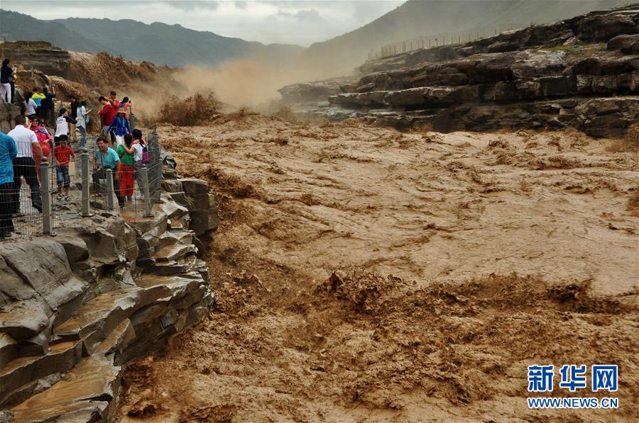 受上游強降雨影響,黃河壺口瀑布水勢大漲,主副瀑布連成一片。