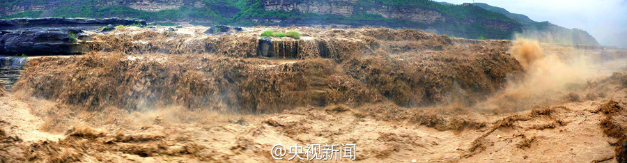 受上游強(qiáng)降雨和水庫(kù)放水影響,最近幾天,黃河壺口瀑布迎來伏汛,最大水流量達(dá)到每秒2600立方米左右,濁流滾滾奔騰而下,氣勢(shì)磅礴?。ㄑ胍曈浾呃钪?文豪)