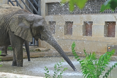 1.大象邊淋浴邊吃水果。