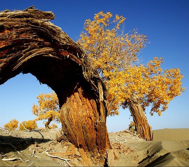 巴州旅游局局長(zhǎng)馬彥成說(shuō), 由于胡揚(yáng)具有驚人的抗干旱、御風(fēng)沙、耐鹽堿的能力,能頑強(qiáng)地生存繁衍于沙漠之中,因而也被人們贊譽(yù)為“沙漠英雄樹(shù)”。巴州輪臺(tái)縣羅布人村寨、羅布湖、及若羌縣的阿拉干沿途景色都非常迷人,希望游客到此賞游,將會(huì)領(lǐng)略到不一樣的美麗風(fēng)光。