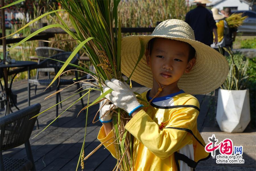 香村的管家將草帽與鐮刀發(fā)放給孩子們,再由經(jīng)驗(yàn)頗豐的伯伯示范,再到實(shí)操,一場歡樂的割稻子活動在田間展開。參與勞作,真切體會那句“粒粒皆辛苦”,在割稻子現(xiàn)場,也能感受到大人們也躍躍欲試,“這邊,這樣割,不對,不對,哎呀……我來”略顯著急的“指揮”著孩子,或許,這樣的場景也帶給家長們重回童年無憂時光的快樂。