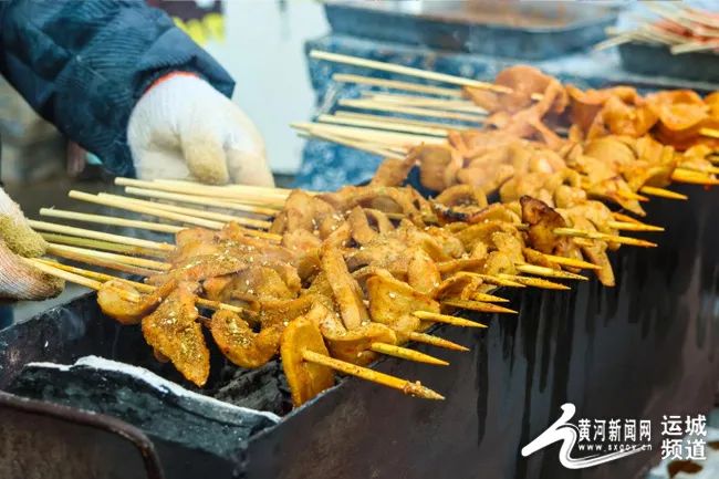 人氣旺的不僅是文化園廣場(chǎng),在文化園的小吃街,有三十多家美食攤位吸引游客前來(lái)打卡、品美食。炸油糕、烤面筋、糖葫蘆等黃河金三角特色小吃數(shù)不勝數(shù),每一個(gè)攤位前都擠滿了游客?!斑@里不僅可以品美食,還可以購(gòu)買平陸本地特產(chǎn),比在老家趕集還熱鬧?!眮?lái)自河南的張先生向記者表示。游客們穿梭在各個(gè)攤位間,挑選心儀的美食,匯聚起濃濃煙火味,滿足了群眾的“舌尖之歡”。