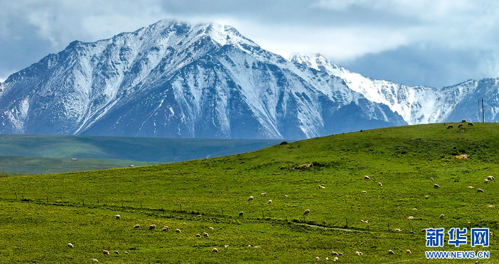 盛夏時(shí)節(jié),祁連山國(guó)家公園甘肅省張掖市肅南裕固族自治縣康樂(lè)鎮(zhèn)段,湛藍(lán)的天空飄著朵朵白云,映襯著巍峨的雪峰和碧綠的大地,牛羊在青草中浮動(dòng),像一把珍珠撒在了綠色的絨毛毯上,勾勒出一幅天然秀麗的生態(tài)畫(huà)卷。新華網(wǎng)發(fā)(王將 攝)