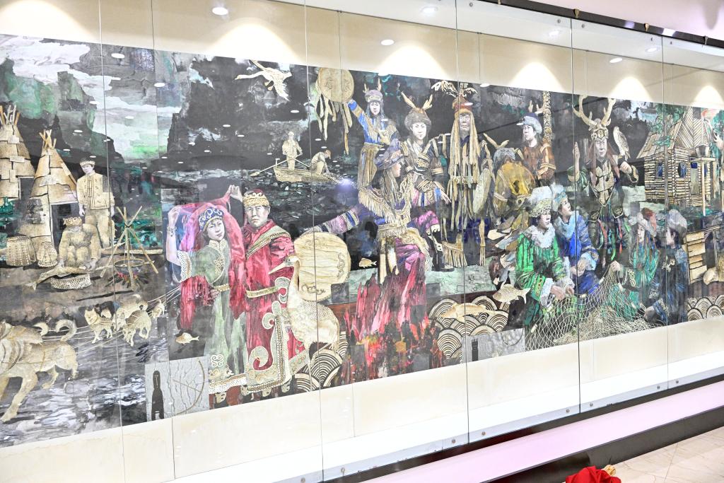 同江市非物質文化遺產(chǎn)展示館中描繪赫哲族傳統(tǒng)生活的壁畫。新華社記者 丁赫 攝