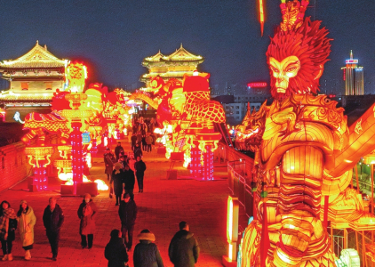 迎春燈組氣勢恢宏。 夜放花千樹,吹落星如雨,是大同現(xiàn)代夜景的詩意寫照。從2013年春節(jié)起,至今成功舉辦九屆的大同古都燈會,已成為大同的傳統(tǒng)民俗活動之一。今年的大同古都燈會從形式到內涵都有了全面的創(chuàng)新升級,在文化感、藝術性和故事性上彰顯出了新春節(jié)慶、地域民俗以及城市時尚的代表元素。燈會通過新穎的手法將“形、色、聲、光、動”融為一體,圍繞生肖文化、祈福文化、特色非遺、傳統(tǒng)美食、大同知名文旅內容等,設立了“古城春韻區(qū)”“悟空嘉年華”“炫彩賀春區(qū)”“魅力大同區(qū)”“年韻薈萃區(qū)”“年趣童真區(qū)”“喜慶盛世區(qū)”“王者榮耀區(qū)”“吉祥福佑區(qū)”九大主題燈區(qū),精心打造集民俗燈彩、演出、互動、體驗、市集為一體的新春燈會,開啟了一場千年古韻與現(xiàn)代風華的交融之旅,將“大同年·大不同”的這份喜慶歡騰、溫馨浪漫,傾情灑向流連在斑斕燈海的游人們。 本版策劃:李聯(lián)軍 本版文字:黃靖 本版責編:黃靖 (責任編輯:梁艷) |