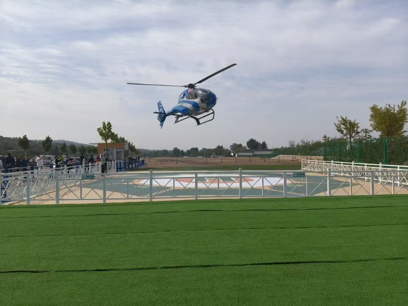 洪洞縣廣勝寺飛行基地,直升機起飛。洪洞縣國有資本投資運營有限公司供圖