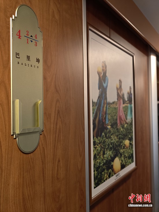 穿行在車廂中間,處處可見新疆的濃濃風情。秉持“一車一風景”的理念,車廂內(nèi)每個房間均以新疆知名景區(qū)命名,房間門口還張貼著對應(yīng)景點的美食美景海報,讓游客未至景區(qū),先浸風情。