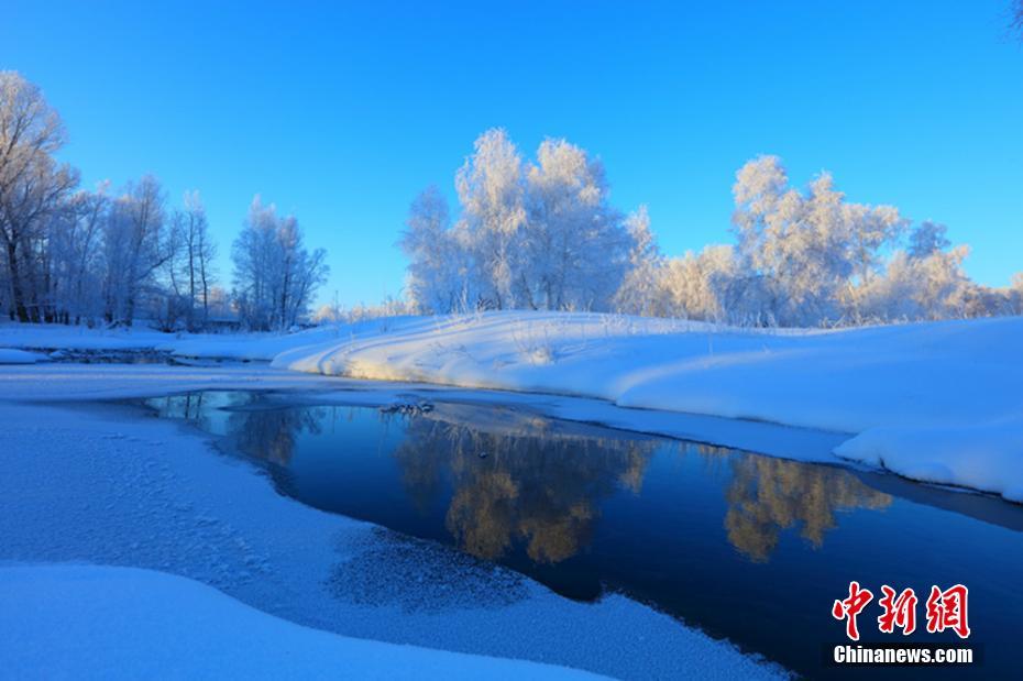 連日來(lái),新疆北部持續(xù)低溫,哈巴河縣受寒冷天氣的影響,出現(xiàn)了大面積霜掛美景。一棵棵白樺樹被妝點(diǎn)成銀白色,晶瑩剔透,潔白無(wú)瑕,置身其中,如同進(jìn)入夢(mèng)幻世界一般。圖為清晨的哈巴河縣銀裝素裹,云霧繚繞。 劉是何 攝