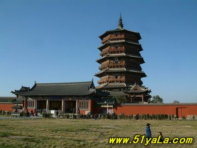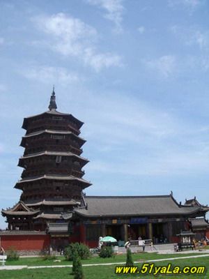 應(yīng)縣木塔佛宮寺釋迦塔位于山西省應(yīng)縣城內(nèi)西北佛宮寺內(nèi)。俗稱(chēng)應(yīng)縣木塔。塔總高67.31米,是我國(guó)現(xiàn)存時(shí)代最早的木結(jié)構(gòu)高層建筑.佛宮寺釋迦塔建于后晉天福年間,遼清寧二年(1056年)重修。