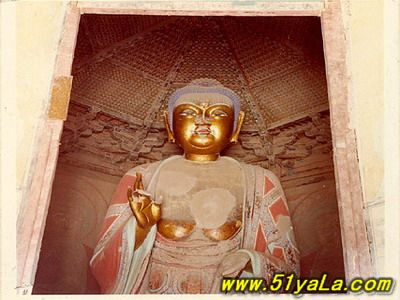 走進(jìn)第一層塔的南門(mén),迎面便是高約10米的釋迦塑像。頂部有精美華麗的藻井。內(nèi)槽的墻壁上,畫(huà)有六幅如來(lái)佛像,門(mén)洞兩側(cè)的墻壁上,也繪有金剛、天王、弟子等壁畫(huà)。壁畫(huà)中最引人注目的是內(nèi)槽門(mén)額壁板上的三個(gè)女供養(yǎng)人。畫(huà)面雖不大,但人物的體態(tài)勻稱(chēng),面容豐滿,神情安詳而虔誠(chéng),衣帶似被微風(fēng)吹動(dòng),在表態(tài)中給人以動(dòng)的感覺(jué)。畫(huà)面的色彩至今仍很鮮艷,可能是后人在遼畫(huà)的基礎(chǔ)上重新描飾的。