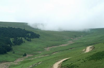 荷葉坪因其山體像荷葉而得名。位居寧武、五寨、岢嵐三縣交界處,在管涔山上與蘆芽山、馬倫草原成三足鼎立的態(tài)勢。最高處海拔2784米,比蘆芽山主峰還高。為晉西北最高峰,電視差轉臺4844就建在主峰。整個山體屬花崗巖結構,但寬廣的頂部覆蓋著厚厚的土層,經(jīng)過多年的雨雪滋養(yǎng),特別適合林木和牧草及中藥材生長。每到夏日,綠草如茵,鮮花盛開,空氣清新。這時周邊三縣的村民就將牛馬趕上坪臺,做好記號,不再管了,深秋時再去找回。