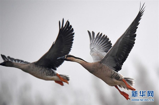 11月29日,候鳥在江西鄱陽湖南磯濕地國(guó)家級(jí)自然保護(hù)區(qū)飛翔。近日,大批南遷候鳥飛抵鄱陽湖棲息越冬。