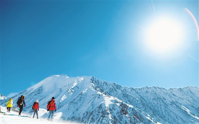 2018年1月1日,由青海省體育局、青海省體育總會(huì)主辦的2018新年登高健身大會(huì)青海分站在青海省海北藏族自治州門源回族自治縣崗什卡雪山舉行,超過2000名戶外登山愛好者以攀登雪山的方式迎接新年。賈海元 攝(新華社發(fā))