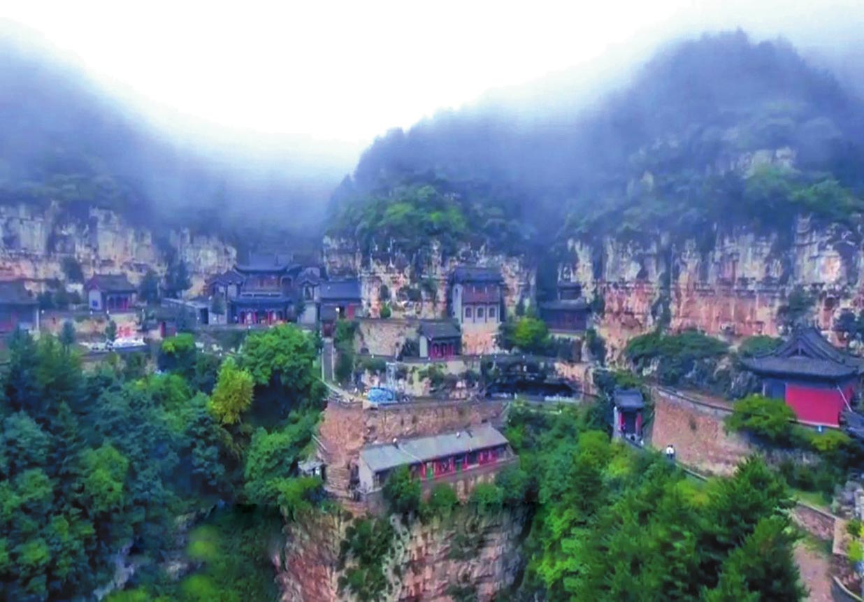 《代州志》記載,趙杲觀創(chuàng)建于北魏時期,歷代均有修葺擴建。其北洞是主體建筑部分,現(xiàn)存建筑物為明代重修,可分北洞與南洞兩大群落。北洞以道教為主,南洞以佛教為主。其中最有特色的兩處要算是北洞的“五層樓”和“三間閣”了。趙杲觀東側(cè)迎面山壁上,自然形成了龐大的三角形石縫,內(nèi)有天然石洞,景觀奇特。石縫上端,外建五層樓閣。依崖開鑿石洞,梁架結(jié)構(gòu)與崖石交接構(gòu)筑,建造精巧。三間閣內(nèi)設有鐵索,扶鐵索可攀援而上。箭閣外塑趙杲泥像,頭頂距石崖僅二指半,故舊稱“趙杲觀,離天二指半”。再往南,就是趙杲觀最險峻的景觀了。