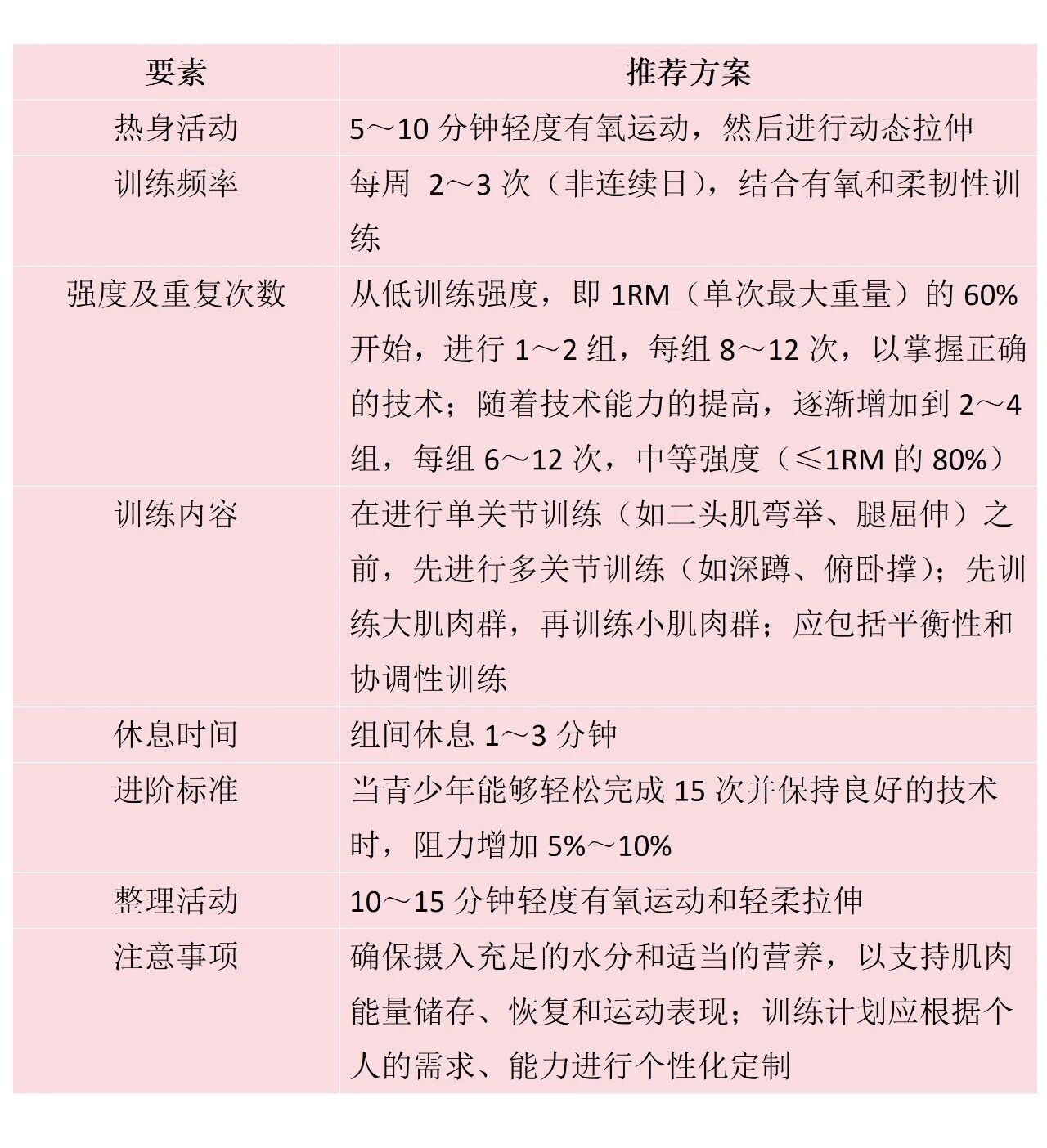 青少年的肌肉力量訓練應遵循以下原則。