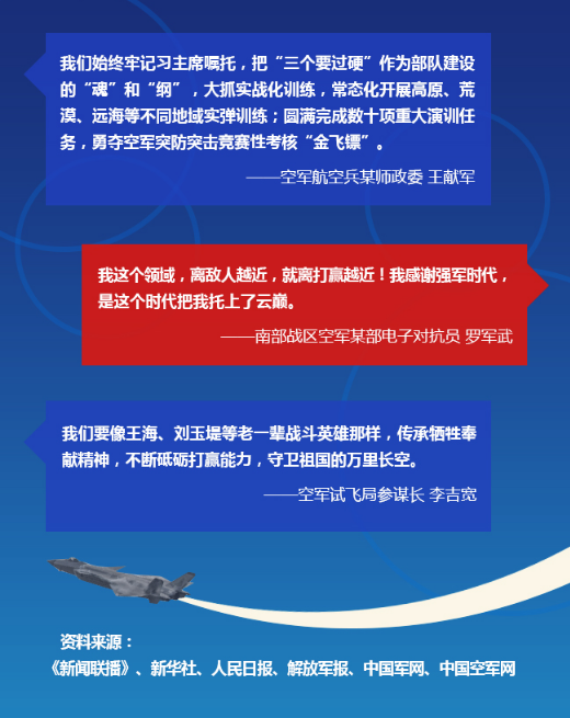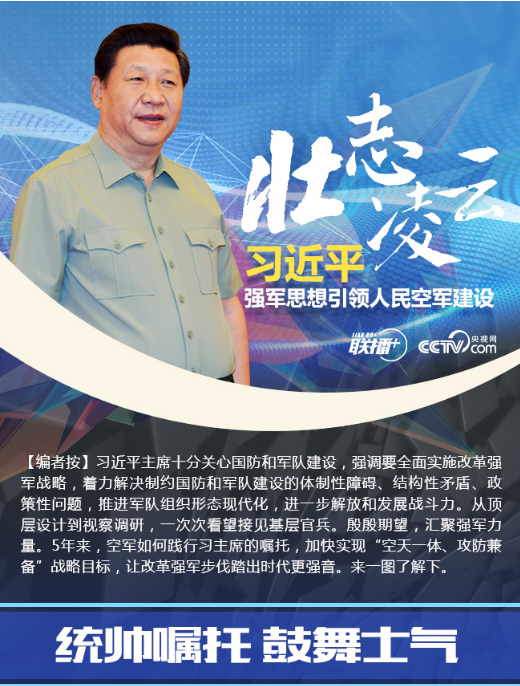 【聯(lián)播+】5年前的4月14日,中共中央總書記、國家主席、中央軍委主席習近平專程到空軍機關調研空軍建設和軍事斗爭準備,代表黨中央、中央軍委向空軍全體官兵致以誠摯的問候,強調要加快建設一支空天一體、攻防兼?zhèn)涞膹姶笕嗣窨哲?,為實現(xiàn)中國夢、強軍夢提供堅強力量支撐。