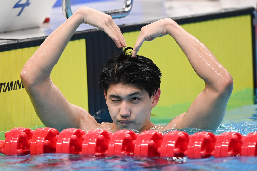 29歲的汪順在男子400米個(gè)人混合泳中展現(xiàn)出超強(qiáng)統(tǒng)治力,始終保持領(lǐng)先,以4分13秒96的成績奪冠。廣東隊(duì)陶冠男和山東16歲小將張展碩以4分17秒68并列亞軍。