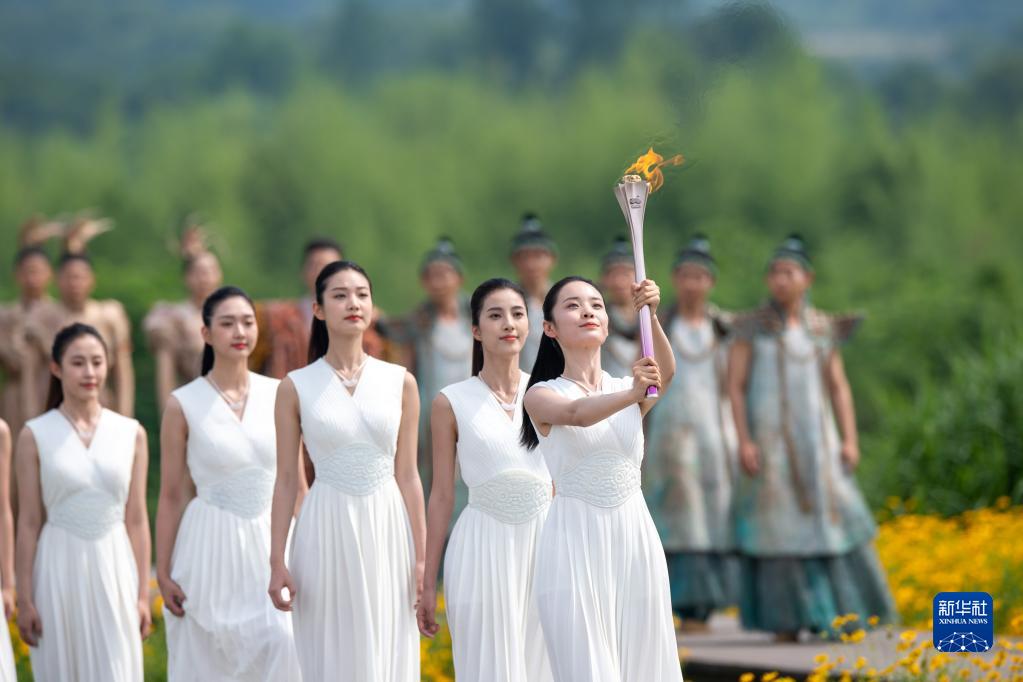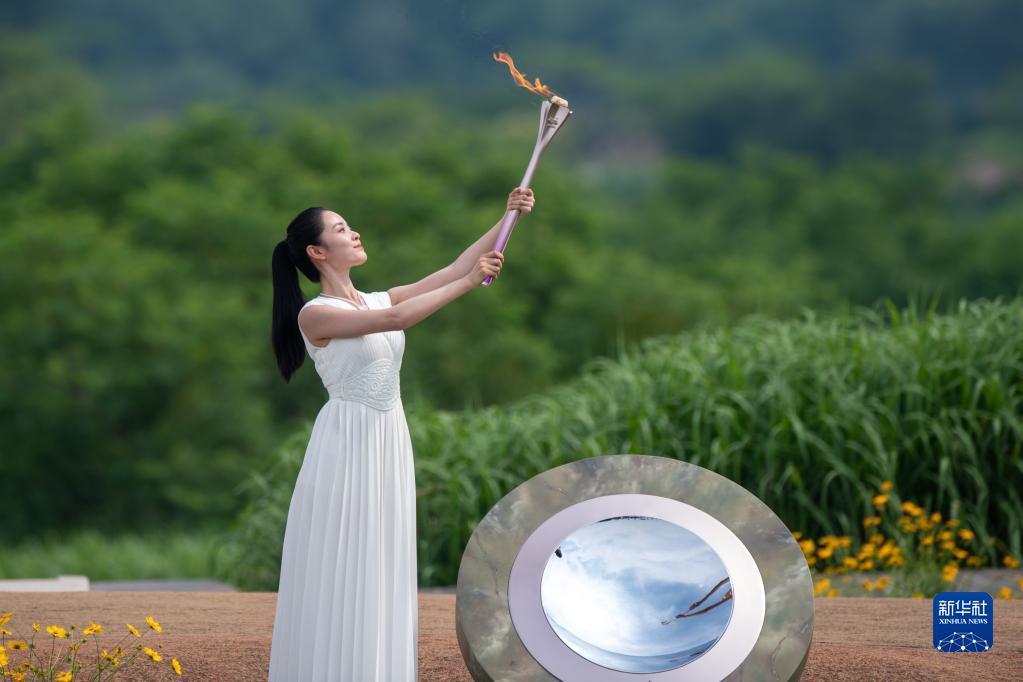 新華社杭州6月15日電(記者夏亮、胡佳麗)15日上午,杭州第19屆亞運會火種在杭州良渚古城遺址公園大莫角山成功采集。