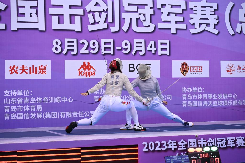 江蘇隊(duì)傅穎(左)在比賽中。(圖片來自中國擊劍協(xié)會(huì))