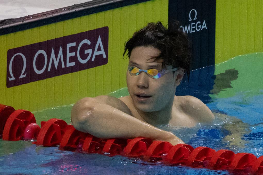 10月21日,覃海洋在男子50米蛙泳決賽后。新華社發(fā)(弗爾季·奧蒂洛攝)
