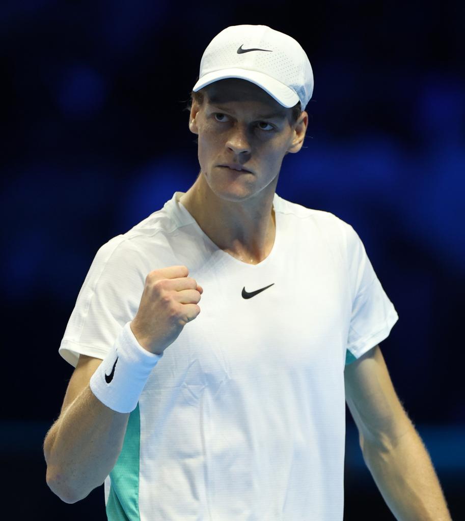 11月14日,辛納在比賽中慶祝得分。新華社發(fā)(阿爾貝托·林格里亞攝)