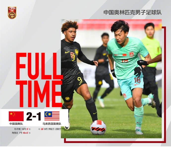 開場后,中國國奧隊(duì)就采取高位逼搶。第5分鐘,杜月徵接陶強(qiáng)龍開出的前場任意球破門,打破僵局。第34分鐘,巴沙遠(yuǎn)射擊中橫梁,尤斯蘭補(bǔ)射破門幫助馬來西亞隊(duì)扳平比分。上半時(shí)補(bǔ)時(shí)階段,中國隊(duì)獲得禁區(qū)內(nèi)間接任意球機(jī)會,陶強(qiáng)龍破門,將比分改寫為2:1。易邊再戰(zhàn),17歲小將王鈺棟替補(bǔ)登場,首次代表中國國奧隊(duì)參賽。雙方在下半場未取得進(jìn)球,2:1的比分保持到了終場。