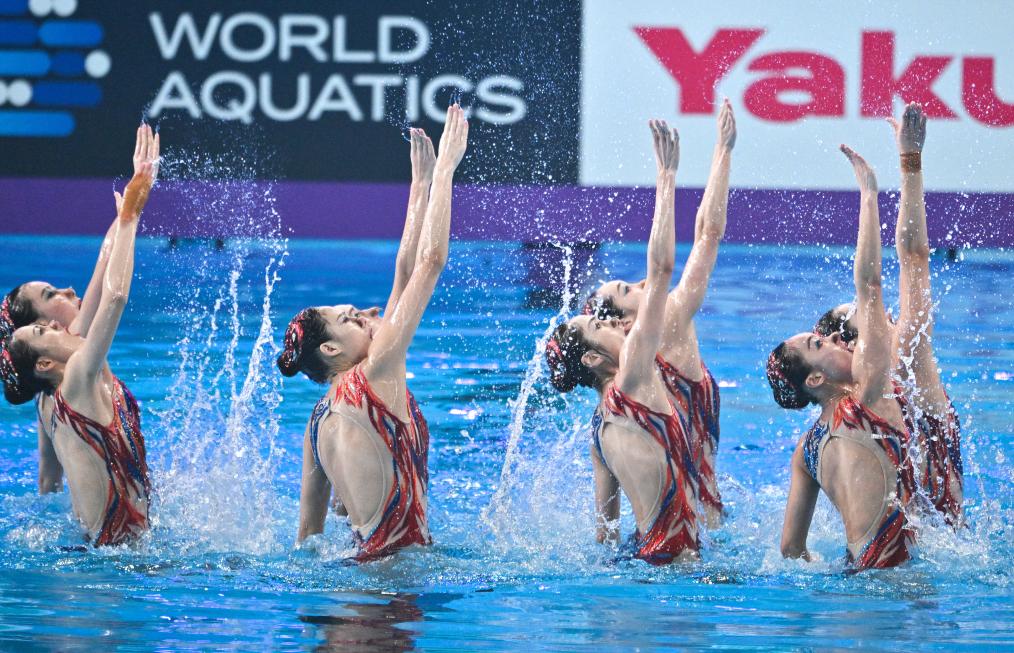 花樣游泳集體技術(shù)自選決賽中,作為預(yù)賽第一名的中國(guó)隊(duì)最后出場(chǎng),以一套主題為《速度與激情》的動(dòng)作再次征服裁判,得到全場(chǎng)最高的299.8712分,力壓西班牙隊(duì)和日本隊(duì)摘金。這是中國(guó)花游隊(duì)在本屆世錦賽上的第四枚金牌。女單自由自選決賽中,徐匯妍最終名列第四名,與獎(jiǎng)牌擦肩。