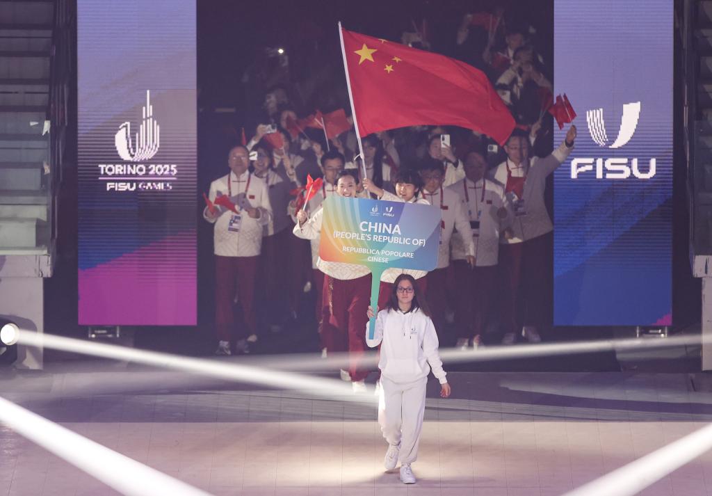 賽會開幕式于當晚在都靈奧林匹克體育館舉行。入場儀式上,來自北京體育大學的女子冰壺運動員裴君杭和北方工業(yè)大學的男子高山滑雪運動員劉祥琪共同擔任中國代表團旗手。