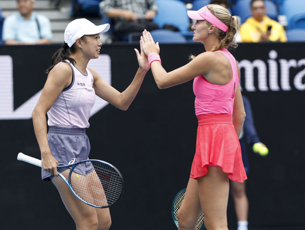 前一天剛度過36歲生日的張帥與穆拉德諾維奇首盤以1:6失利,第二盤曾以1:4和2:5落后,雖然兩人奮起直追,將比分扳成5:5,但來自捷克的西尼亞科娃和美國的唐森德最終以7:5勝出。
